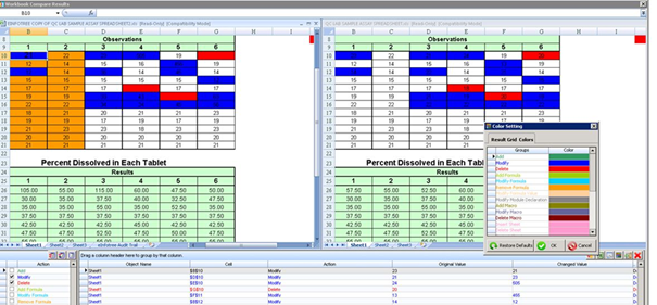 • 系统可对不同版本的Excel进行对比分析,并对差异性进行颜色标记。