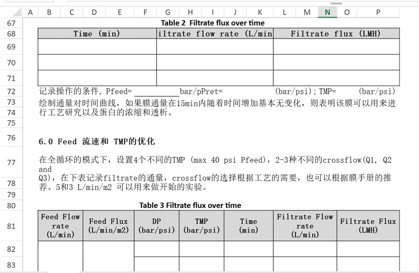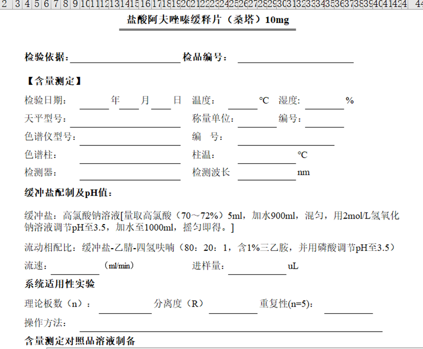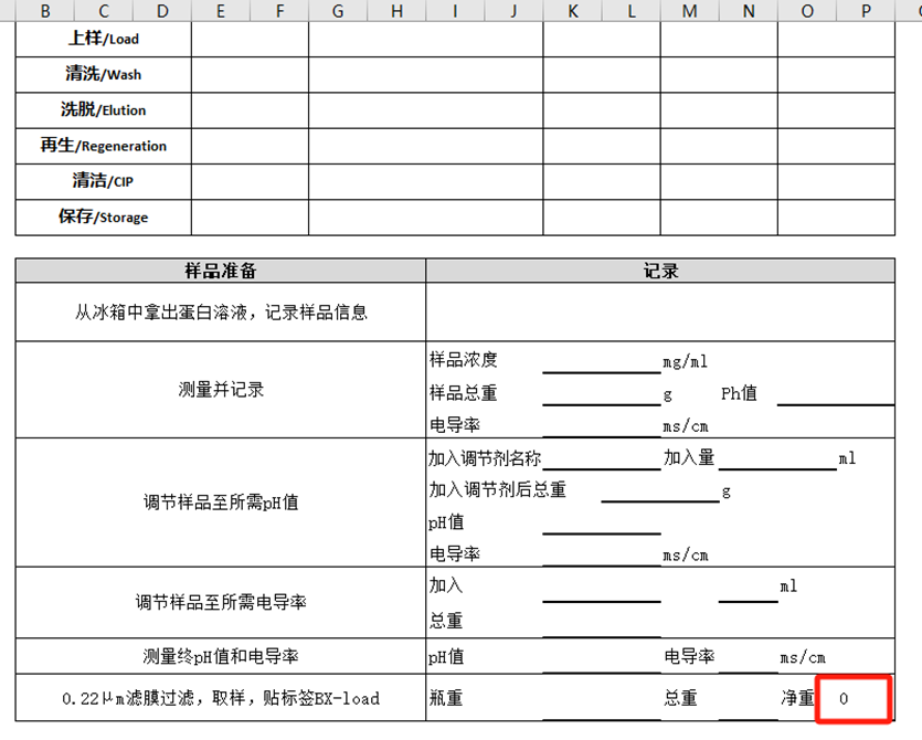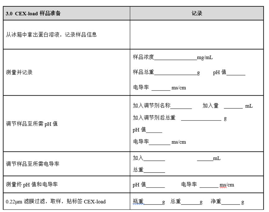 下面是一个生物工艺的阳离子交换工艺研究记录模板的截图,原本是采用Word制作的,打印出来让实验人员填写。