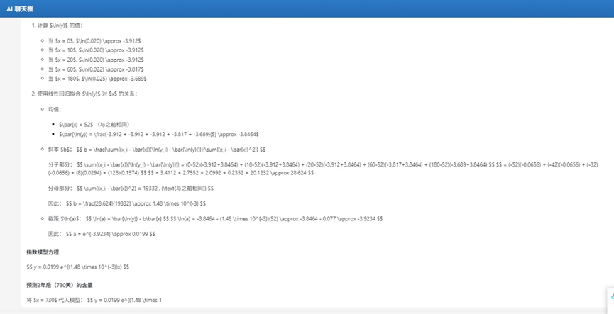 AI给出了两种不同模型的解答,包括线性回归和指数模型。
