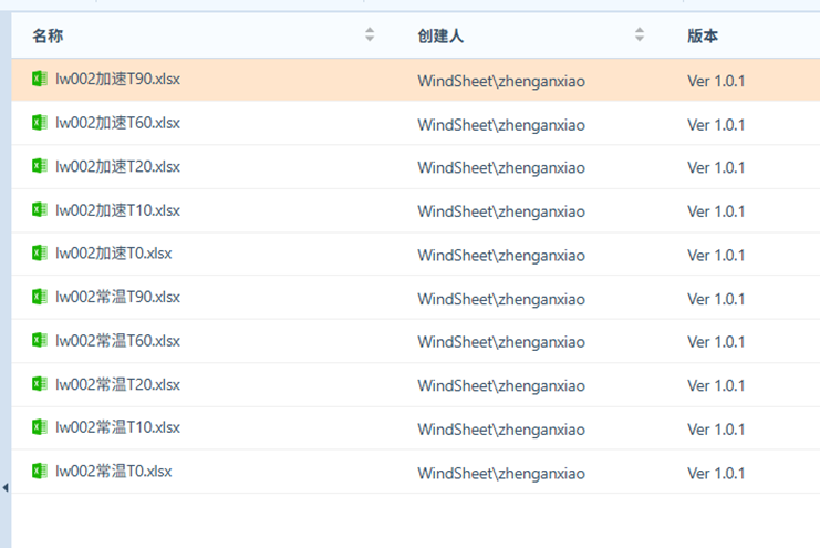 基于这个模版,每个批次每个时间点的检测结果均新建一个对应的电子表格记录,形成了一个文件列表。