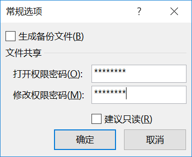 • 此时必须要有密码才能打开文件,若需要修改内容,还需要修改密码。