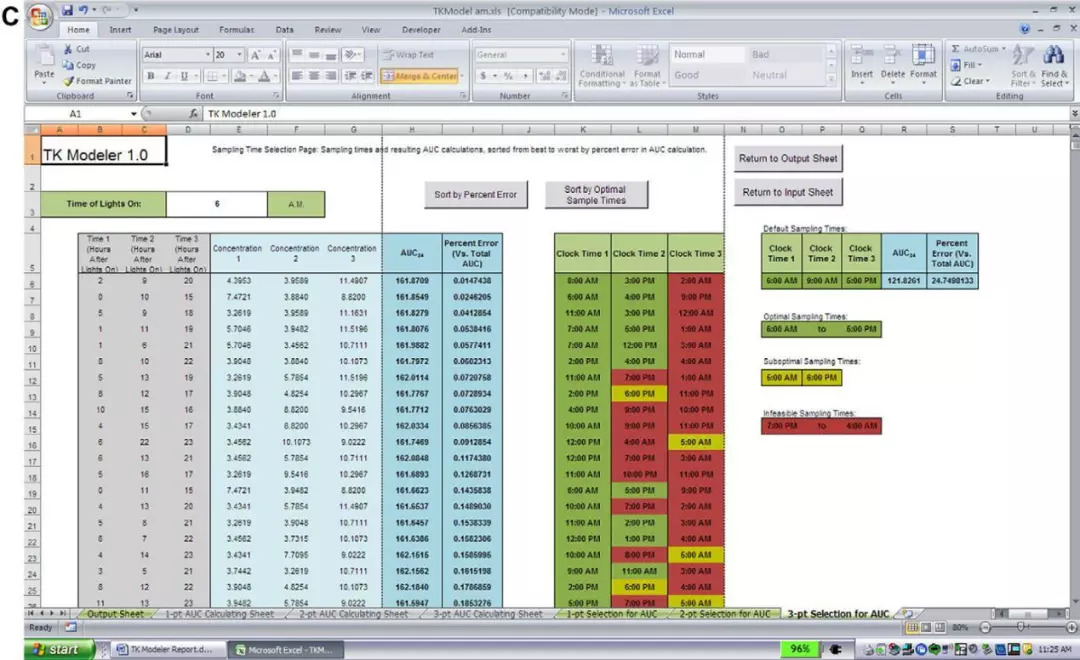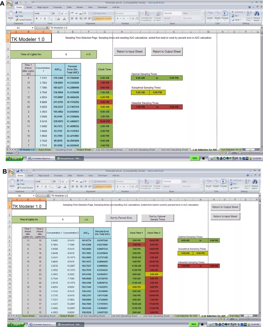完成血药浓度曲线的预测计算后,点击”output sheet”右上角的取样时间按钮,即可生成最佳采样时间。