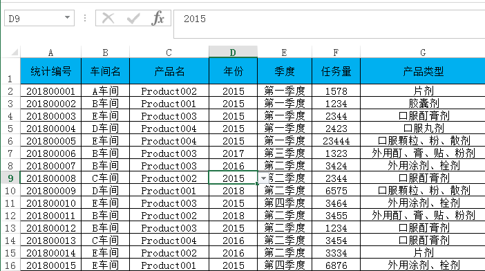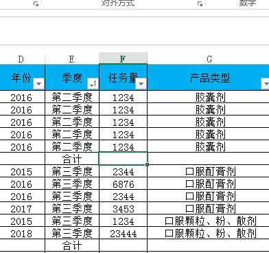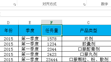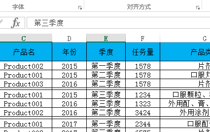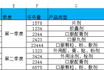 而第一行则可作为描述各列数据属性的标题,如”季度”、”任务量”、”产品类型”,是筛选和排序的字段依据。