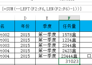 图一F列的数据都是带单位的,数据的属性也变成了文本属性,需要将数据分列或者单位替换为空才能求和,或者使用复杂公式(=SUM(–LEFT(F2:F6,LEN(F2:F6)-1))),这样复杂的数组公式对于函数小白来说并不容易理解和记忆。